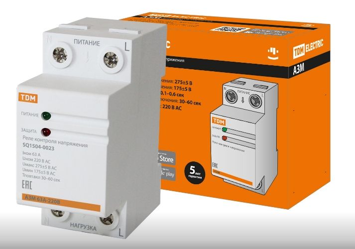Реле контроля напряжения серии АЗМ (однофазное) 63А, 220В TDM SQ1504-0023