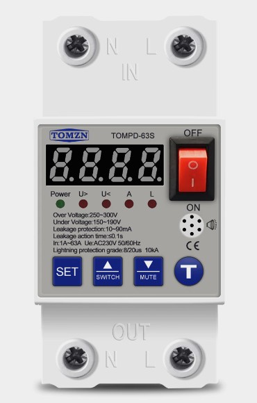Реле контроля напряжения и тока с функцией УЗО, TOMZN TOMPD-63S