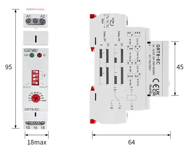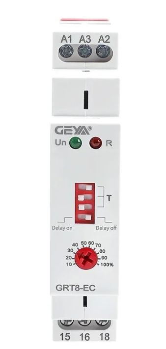 Модульное реле времени с задержкой на включение или выключение 230V AC/ 24V AC/DC Geya GRT8-EC