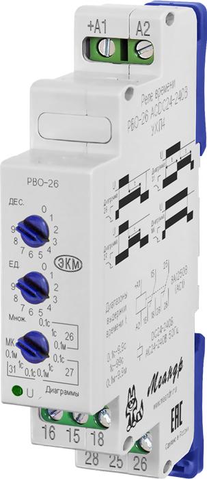 Реле времени РВО-26 предназначено для формирования задержки на выключение исполнительного реле после снятия напряжения питания или для включения исполнительного реле после снятия напряжения питания на предварительно установленную выдержку времени. Реле обеспечивает работу встроенной контактной группы без выдержки времени.