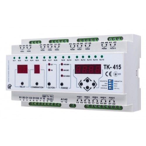 Последовательно-комбинационный таймер ТК-415 представляет собой микропроцессорное программируемое устройство и предназначено для коммутации в предварительно настроенные моменты времени 15 нагрузок по очереди (последовательный режим) или в определенных комбинациях (комбинационный режим).