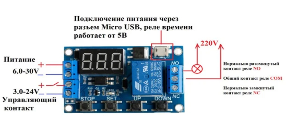 Данное реле содержит и дополнительный функционал связанный с кнопкой STOP.