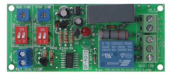 Подключите кнопочный переключатель и нажмите его, затем зеленый индикатор загорится, указывая, что он работает. Плата будет автоматически работать в соответствии с установкой времени запуска и времени остановки, бесконечного цикла. Нажмите кнопку запуска снова, затем красный светодиодный индикатор загорается, указывая, что он остановился.