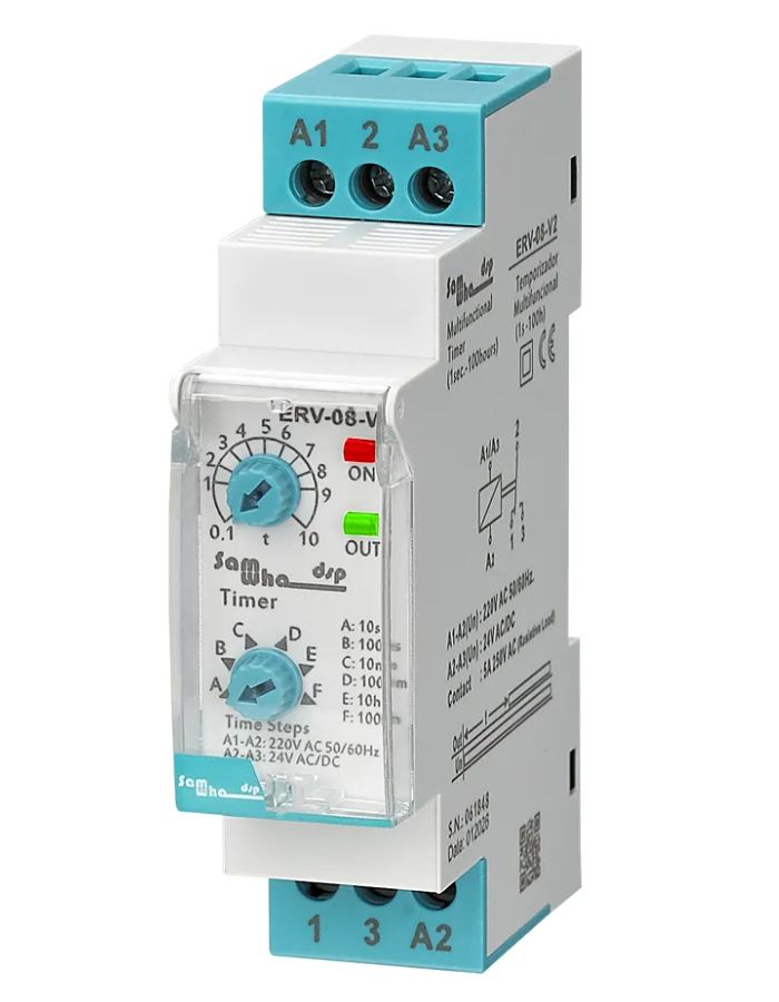 Реле времени с задержкой на включение 220V AC/ 24V DC, 5А, Samwha ERV-08-V2 Новинка