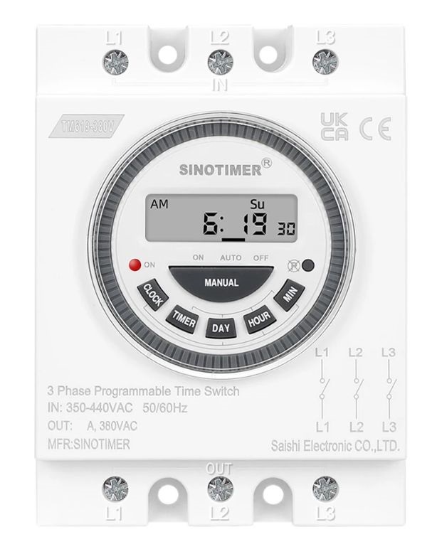 Реле времени недельное, 3-х фазное, 380В/30А, Sinotimer TM619-380V