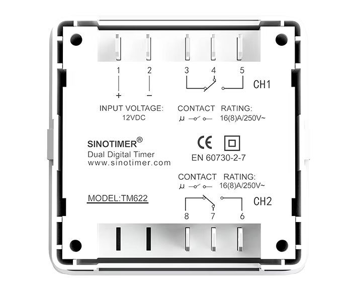 Реле времени недельное двухканальное 12В (секундный интервал) Sinotimer TM622 белая подсветка