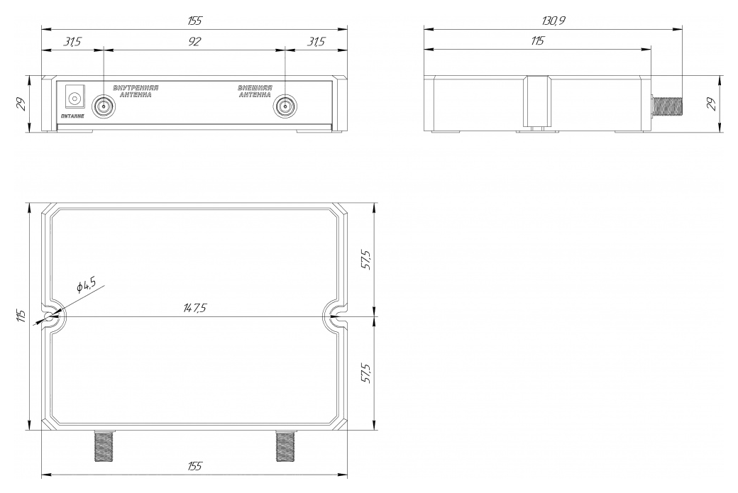 • Разъемы F-типа позволяют использовать распространенные и недорогие коаксиальные кабеля 75 Ом с накручивающимися штекерами того же типа;
