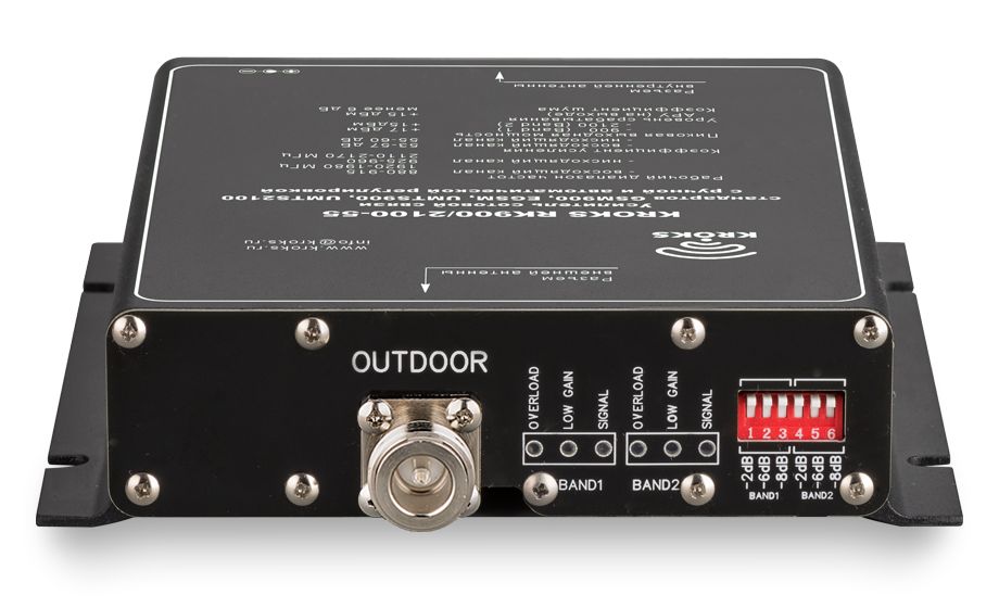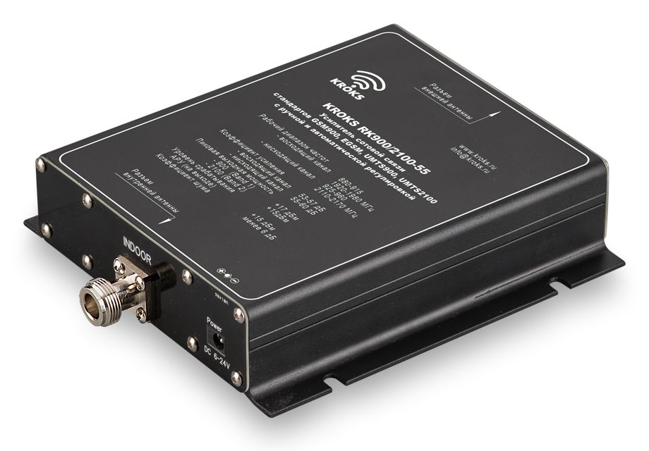 Усилитель сотового сигнала RK900/2100-60 производства НПК Крокс решает проблемы с приёмом сигнала GSM900 (EGSM, EDGE) и UMTS2100 (3G, HSPA, HSPA+) мобильными телефонами (модемами и прочими абонентскими устройствами) в тех помещениях, где сигнал слаб или отсутствует совсем. Репитер предназначен для усиления мобильного сигнала в доме, на даче, квартире, офисе.