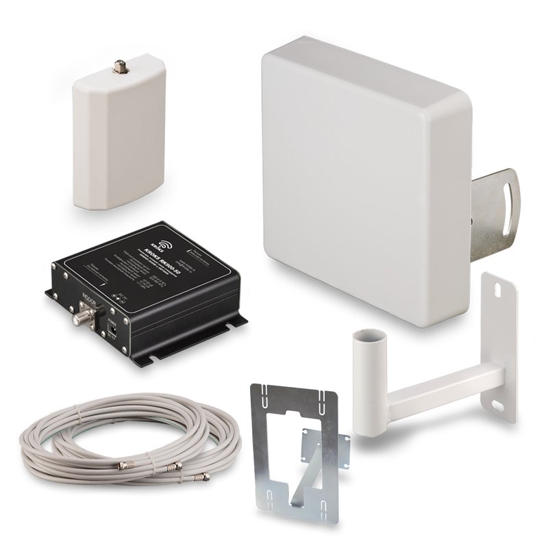 Комплектуется внешней GSM-антенной KP9-900 с усилением 9 дБ, внутренней компактной настенной антенной KP7-900 с усилением 7 дБ и репитером RK900-50F.