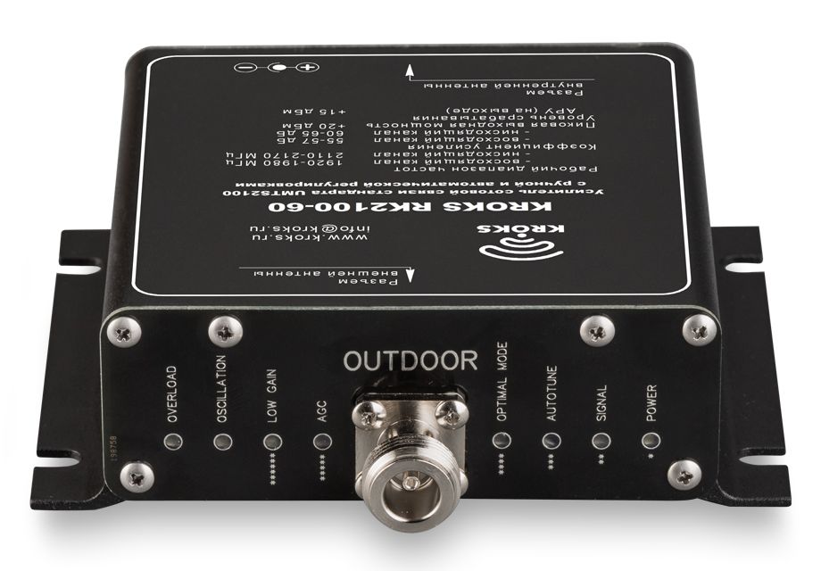 Усилитель сотового сигнала RK2100-60 производства НПК Крокс решает проблемы с приёмом сигнала 3G (UMTS, HSPA, HDSPA) мобильными телефонами (модемами и прочими абонентскими устройствами) в тех помещениях, где сигнал слаб или отсутствует совсем. Репитер предназначен для усиления мобильного сигнала в доме, на даче, квартире, офисе.