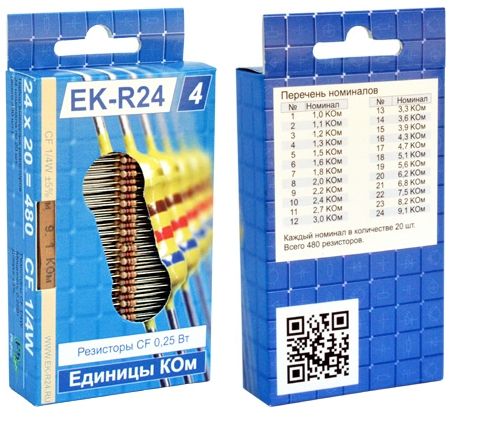 Набор резисторов (единицы КОм), 24 номинала, каждого по 20 резисторов EK-R24/4