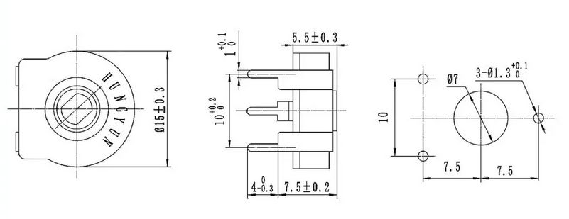 Подстроечный резистор PT15, 100 кОм, 0.25 Вт, 20%, 250 В DC, B104-29G3