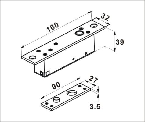 Габаритные размеры 160х32х39мм, оветная часть 90х27х3,5мм