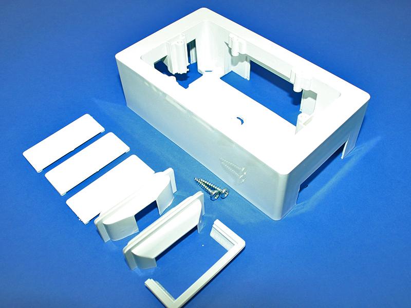 Коробка монтажная под 4 модуля электроизделий "BRAVA" и "VIVA", тип PDD-N120. Назначение: организация рабочего места. Монтаж электроустановочных изделий: с каркасами (аналогично монтажу в стены).