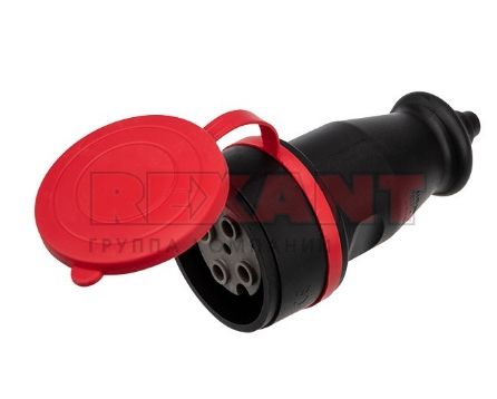 Розетка переносная влагозащищенная с крышкой, 3Р+РЕ, 32 А, IP44 каучук REXANT