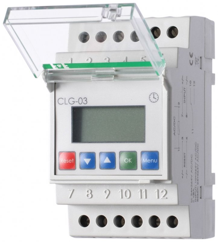 CLG-03 является программируемым, многофункциональным электронным счетчиком, предназначен для подсчета времени работы подключенных устройств или систем в диапазоне от 1 до 999 999 часов, что соответствует максимальному периоду в 114 лет. Время работы подсчитывается по индивидуальной программе, установленной потребителем. После достижения граничных значений счетчик подкорректирует их в соответствии с выбранной программой.