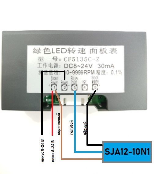 Вывод питания датчика Холла коричневого цвета подключается совместно с положительным выводом источника питания и заводится на первый контакт колодки подключения.