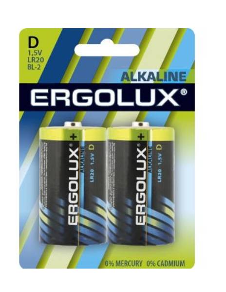 Элемент питания Alkaline Ergolux 1,5 В LR20/373 2 шт