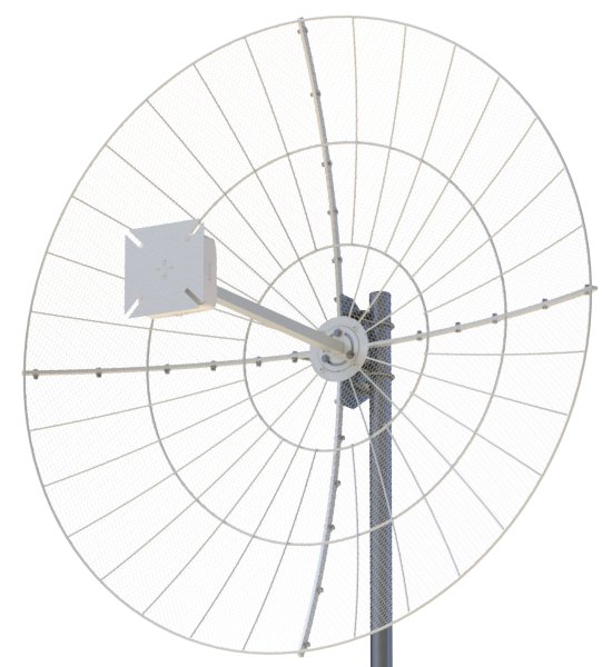 Для удобства транспортировки до места установки, антенна имеет разборную конструкцию: зеркало собирается из четырех сегментов. Для увеличения корозостойкости в конструкции антенны используется алюминий, оцинкованная сталь и финишное порошково-полимерное покрытие.