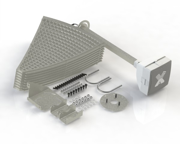 Для удобства транспортировки до места установки, антенна имеет разборную конструкцию: зеркало собирается из восьми сегментов, которые компактно размещены в одной коробке. Параболический отражатель изготовлен из алюминия методом литья под давлением для увеличения жесткости, точности исполнения, легкости и стойкости к корозии. Узел крепления антенны имеет защитное гальваническое покрытие, детали из алюминия (сегменты и держатель облучателя) покрыты порошковой краской.
