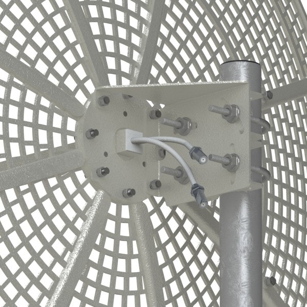 Крепление позволяет закрепить антенну на вертикальной трубе, предусмотрены: регулировка угла наклона (±15°), изменение азимута (поворот с креплением вокруг вертикальной трубы).