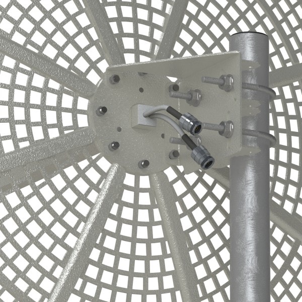 Крепление позволяет закрепить антенну на вертикальной трубе, предусмотрены: регулировка угла наклона (±15°), изменение азимута (поворот с креплением вокруг вертикальной трубы).