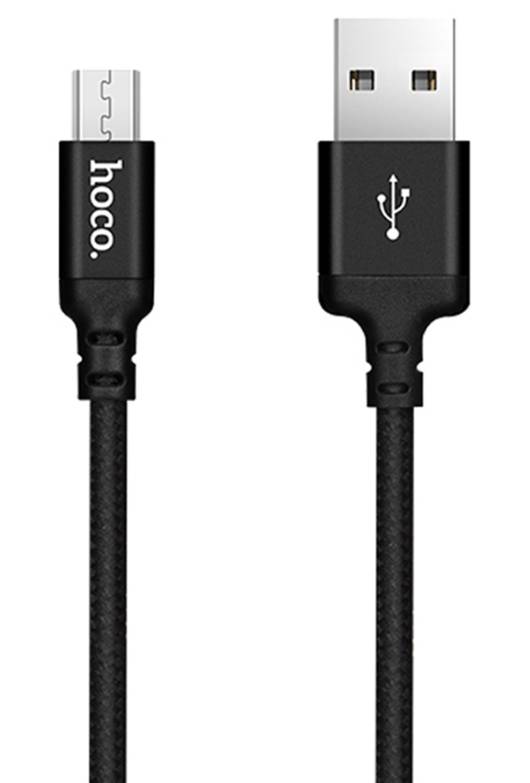 Кабель USB - MicroUSB HOCO X14 2,4A (черный) 2 метра (в оплетке)