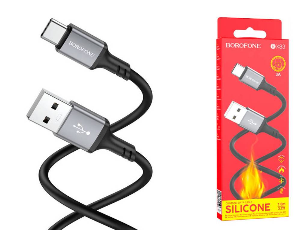 Прочный силиконовый USB кабель Type-C BOROFONE BX83 предназначен для передачи данных и подзарядки цифровых устройств. Кабель usb typec для зарядки телефона оптимальной длины 1 метр устойчив к переломам и изгибам. Зарядка кабель type c обеспечивает комфорт