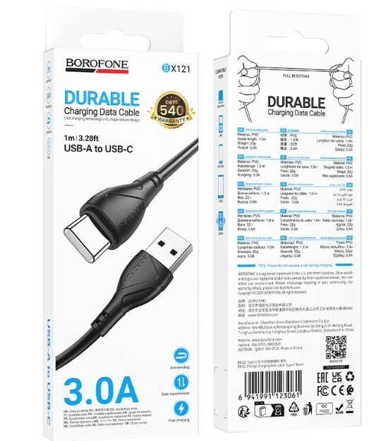 Кабель USB - USB Type-C BOROFONE BX121/ 1m/ 3A/ черный