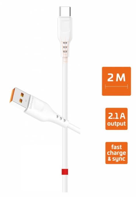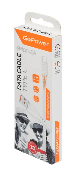 Кабель USB - USB Type-C 2 метра 2,1A GoPower GP01T-2M белый
