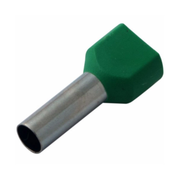 Втулочный наконечник состоит из латуни, с поверхностным электролитическим лужением, и рассчитан на монтаж 2-х проводников с соответствующим сечением под опрессовку.