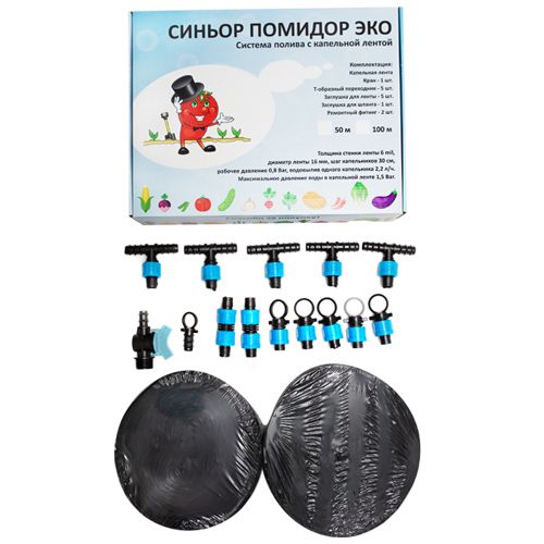 Набор капельного полива представляет собой все необходимое для устройства капельного полива на 100 метров грядок. Специально адаптирован для укладки в дачных теплицах. Может использоваться в открытом и закрытом грунте.