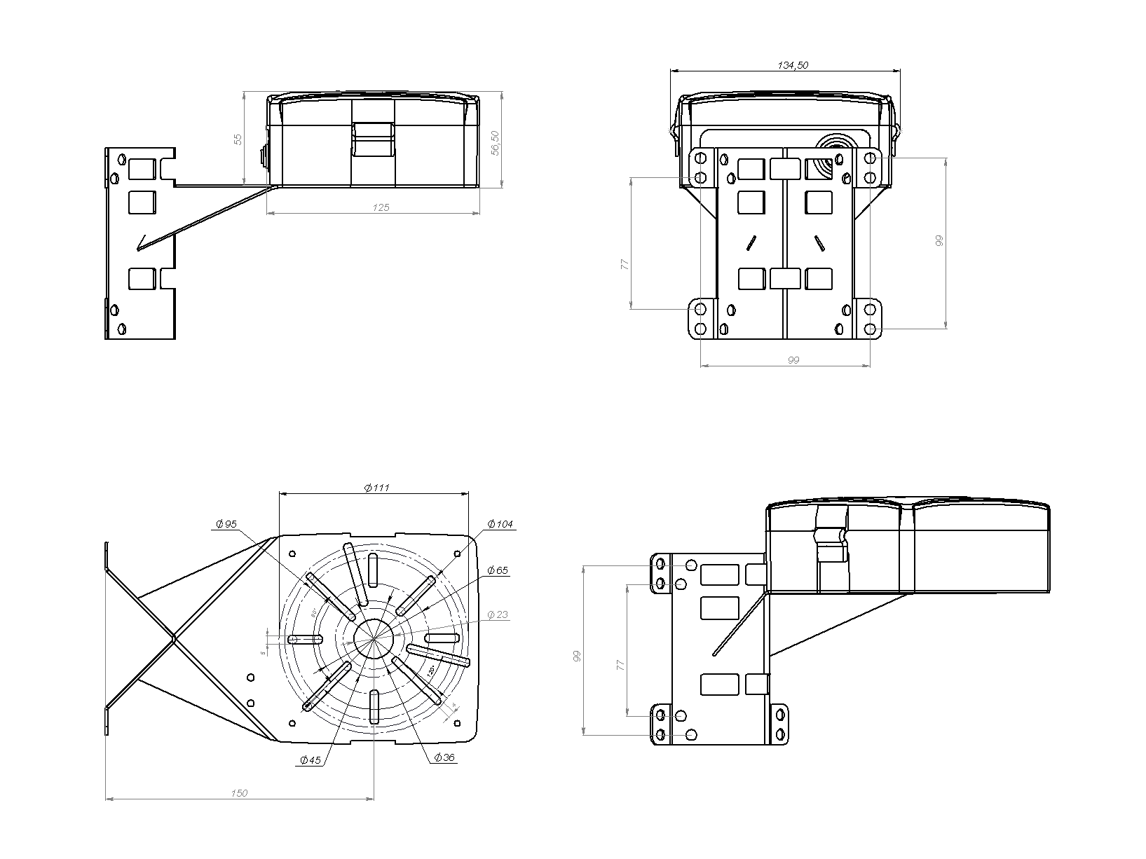 Универсальный кронштейн KSV-150U BOX предназначен для монтажа камер видеонаблюдения на плоские вертикальные поверхности с вылетом на 150мм от стены. Конструкция кронштейна так же позволяет расместить камеру на угол здания, на мачту и на опору ЛЭП. Шаг монтажных отверстий совпадает с кирпичной кладкой, что позволяет устанавливать кронштейн не повреждая облицовочный кирпич.