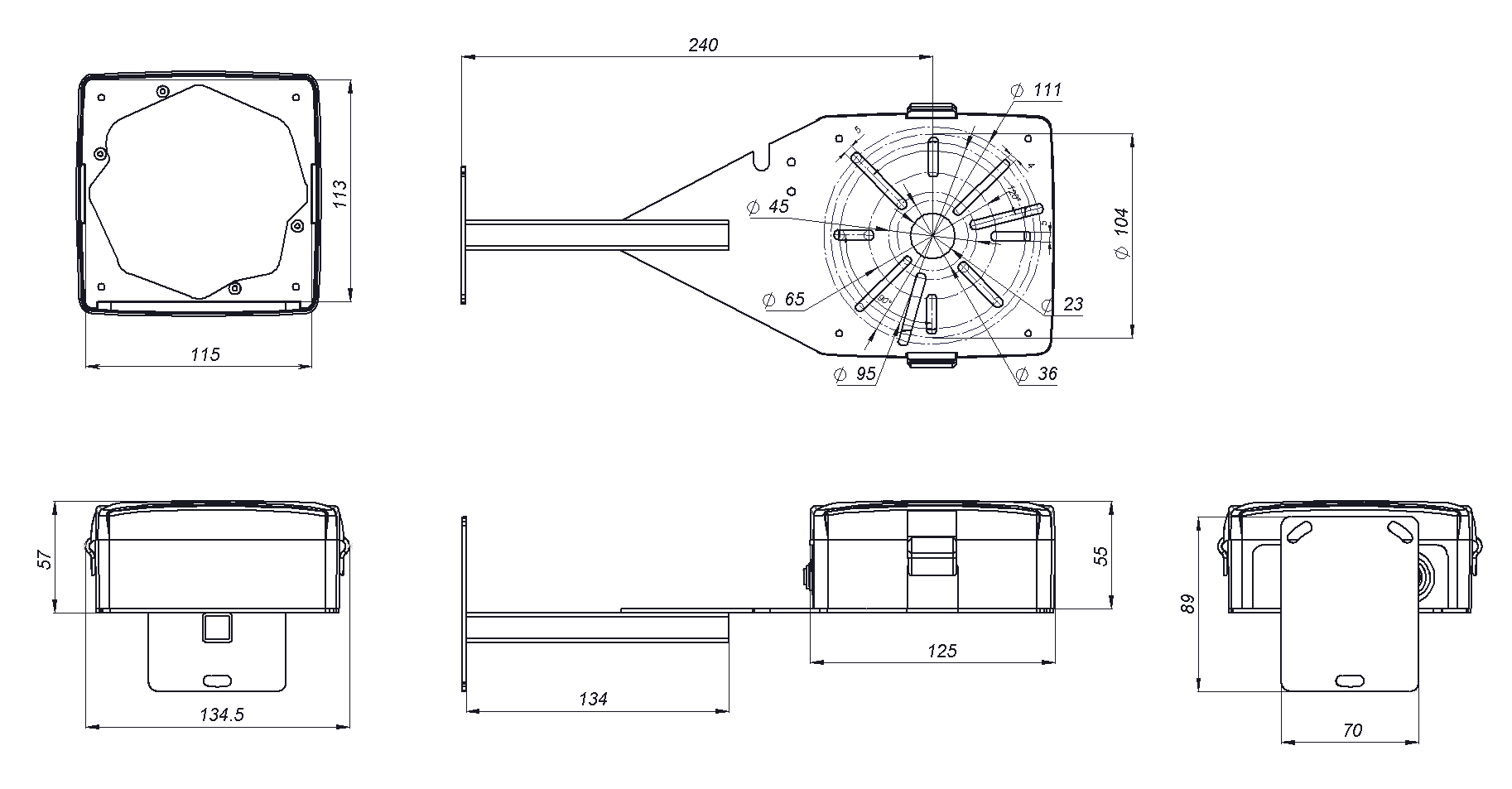 Стеновой кронштейн KSV-240 BOX предназначен для монтажа камер видеонаблюдения на плоские вертикальные поверхности с вылетом на 240мм от стены.
