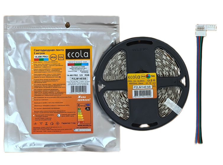 Светодиодная лента Ecola Лента 12V 14.4W/m 60Led/m IP20 RGB 5м (интер) PRO SMD5050