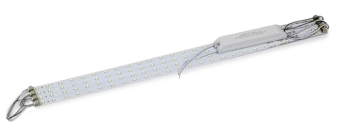 Комплект предназначен для замены светодиодных линеек, вышедших из строя в светильниках "Армстронг". Цветовая температура равна 4500 К.