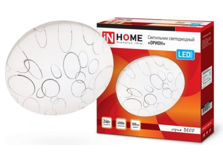 Светодиодный светильник круглой формы ОРИОН серии DECO от ТМ In Home в классическом белом корпусе с нейтральным абстрактным рисунком удачно впишется в любой современный интерьер.