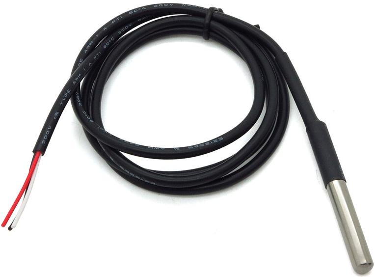 Широко известный датчик температуры DS18B20 в водонепроницаемом корпусе из нержавейки.