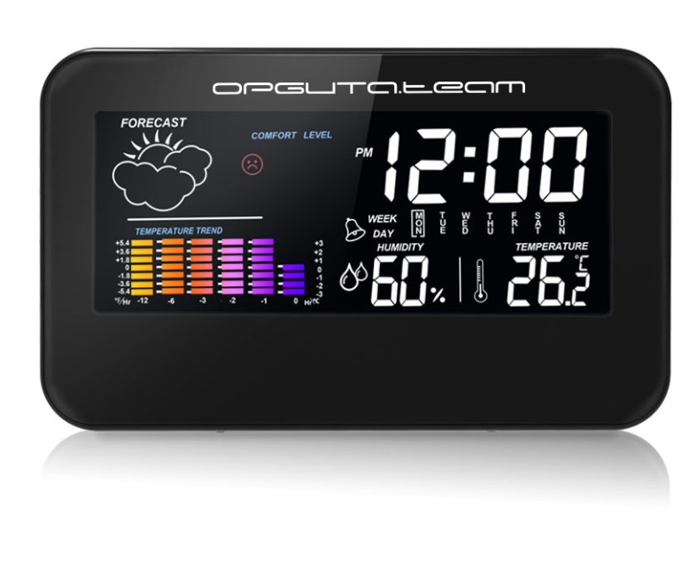 Функции время, будильник, дата, уровень комфорта, прогноз погоды, SNOOZE (отсрочка сигнала будильника)