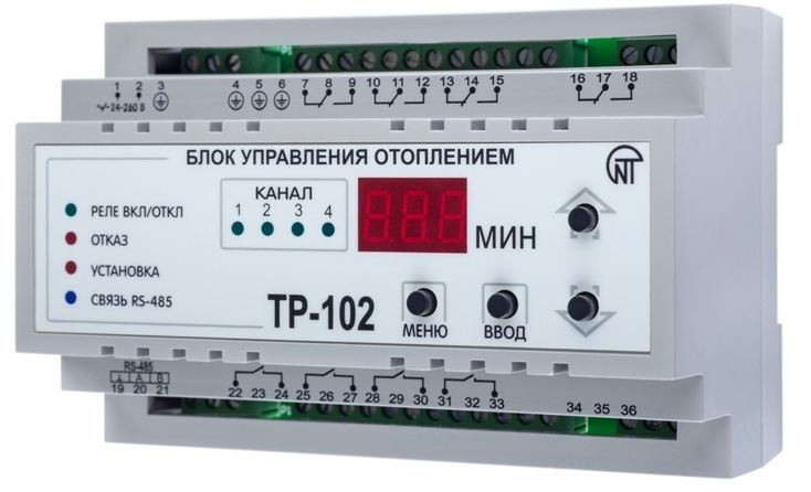 ТР-102 имеет универсальное питание и может использовать любое напряжение от 24 до 260В, независимо от полярности.