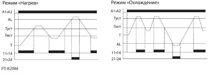 • Реле могут работать как в режиме «нагрев», так и в режиме «охлаждение».