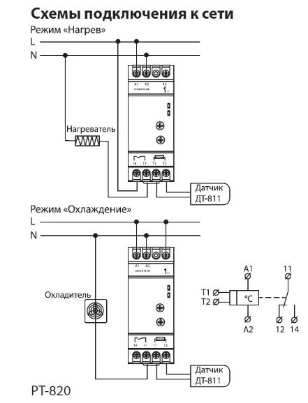 • Длина провода датчика 1 метр (для РТ-820) и 2,5 метра (для РТ-820М), при необходимости длину можно нарастить до 50 метров, используя подходящий по температурному режиму 2-х жильный провод.