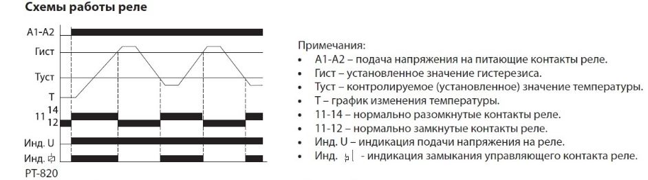 • Реле могут работать как в режиме «нагрев», так и в режиме «охлаждение».