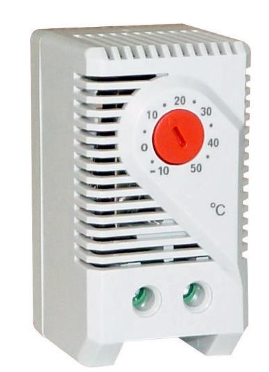 Терморегулятор регистрирует температуру в распределительном шкафу. Должен быть размещен в верхней части распределительного шкафа на максимальном расстоянии от нагревательного прибора или других источников тепла. Устанавливается на стандартной 35мм DIN рейке защелкиванием. Вентиляционные щели терморегулятора не должны быть закрыты.