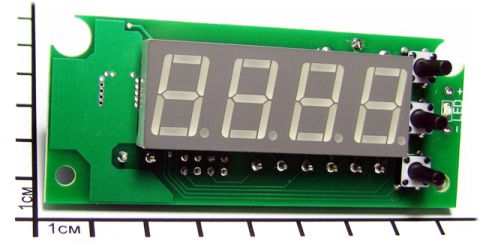 Модуль предназначен для самостоятельной сборки блока индикации температуры и управления внешним устройством в зависимости от температуры. Модуль состоит из модуля индикации, управляющих кнопок и выносного датчика температуры DS18B20 на кабеле. Для подключения питания, внешних устройств и датчика температуры установлены клеммники под отвертку. На печатной плате имеется контактная точка OUT, соединенная с выводом 9 микроконтроллера (PD5/OC0B). На плате установлен светодиод, отображающий состояние реле (выключенный светодиод - реле отключено*). Кроме того, на плате имеется два контактных отверстия для подключения внешнего светодиода, при необходимости.