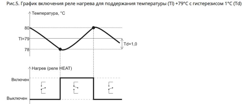 Пусть T - текущая температура. Реле нагрева (HEAT) включается при T≤Tl-Td, выключается при T≥Tl+Td.