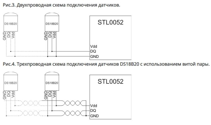 • Возможно подключение одного или двух датчиков температуры (датчики в комплект не входят).