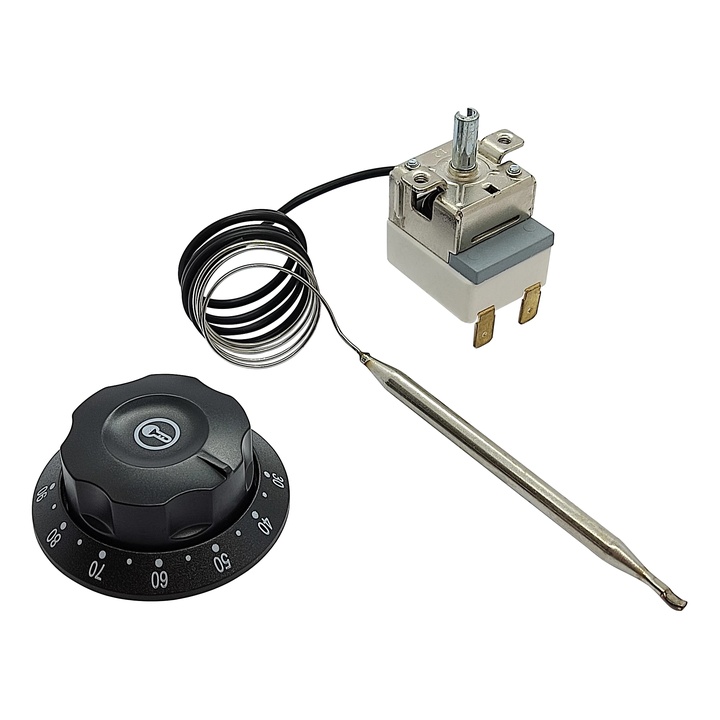 Капиллярный термостат WKC-90S2, +30…+90°C, 16A/250В АС с рукояткой Новинка