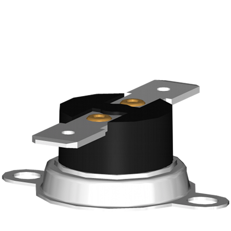 Самовосстанавливающийся биметаллический термостат KSD301B060UF1B - электромеханическое изделие, предназначенное для замыкания силовой электрической цепи при достижении температуры в 60°С. Подвижная скоба крепления.
