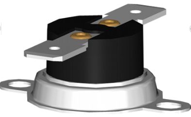 Самовосстанавливающийся биметаллический термостат T24A050AUF2-15 - электромеханическое изделие, предназначенное для размыкания силовой электрической цепи при достижении температуры в 50°С. Подвижная скоба крепления.